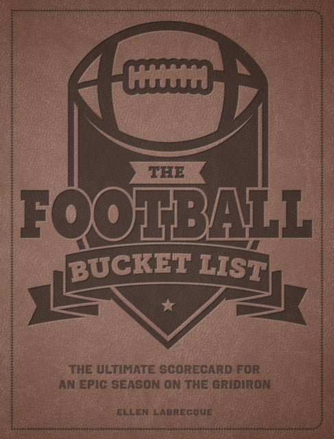 The Football Bucket List, bound in vegan leather and featuring a heat-stamped cover design and football-like stitching around the edg...