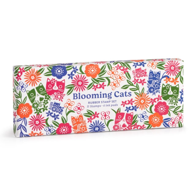 STAMP SET - The Blooming Cats Rubber Stamp Set features 11 beechwood-handled rubber stamps and 4 ink colors packaged in a sturdy box. Create endless multi-colored floral and cat combinations, perfect for crafty gifts, custom notes, gift wrap, or decorations! Unleash your inner artist!