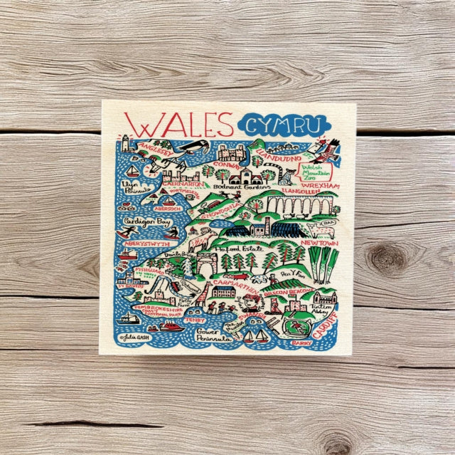 Julia Gash Wooden Coaster - Wales. Our beautiful wooden coasters are made in the UK, printed on sustainable, FSC certified birch and sealed with a heat resistant and wipe-safe varnish. Featuring some of Wales' most iconic cities and beautiful landscapes, illustrated by Julia in her spirited handw... Lue lisää