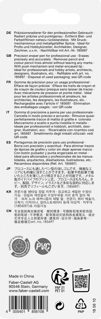 Uudelleen täytettävä ja sisältää neljä lisäpyyhekumia. PVC-vapaa, valmistettu 63 % kierrätetystä muovista. Siinä on työntömekanismi ja metallikoteloitu kärki mukavuuden ja kestävyyden takaamiseksi. Lue lisää