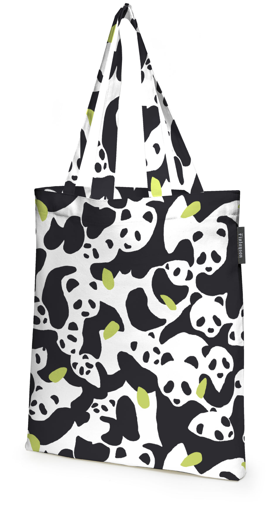 Sukukokous-kangaskassin sympaattinen pandakuviointi puhuttelee! Lue lisää