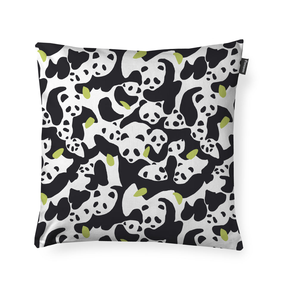 Sukukokous-koristetyynynpäällisessä on graafinen pandakuosi. Lue lisää