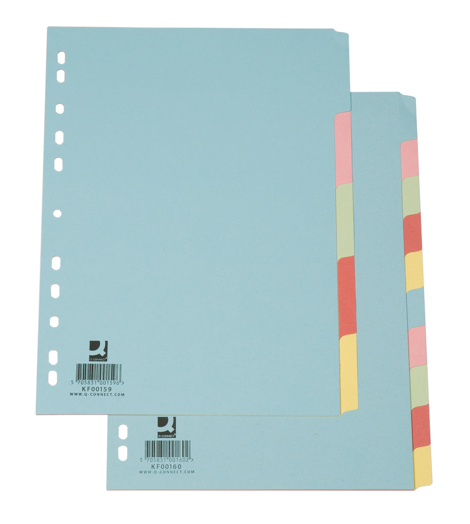 Q-Connect hakemistossa on värilliset kartonkiset (175 g) lehdet. Valkoinen etusivu. 10-osainen.