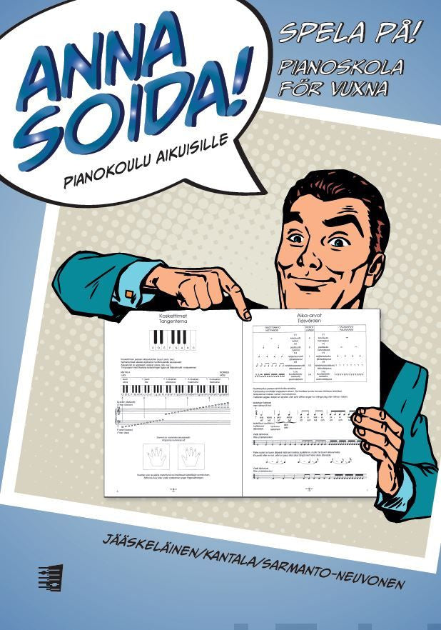 Anna soida! (Let it play!) is a piano school for grownups. This is the bilingual version in Finnish and Swedish.