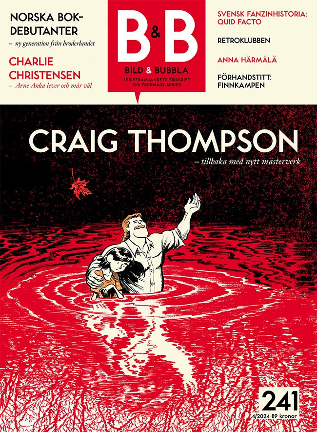 Bild & Bubbla 241 innehåller bland annat intervjuer med ett flertal serieskapare, som svenska Charlie Christensen – skaparen av Arne Anka), finska Anna Härmälä – om henes serieroman Singelmamman och amerikanska Craig Thompson – om hans seriebok Ginseng Roots. Numret innehåller även artiklar o... Lue lisää