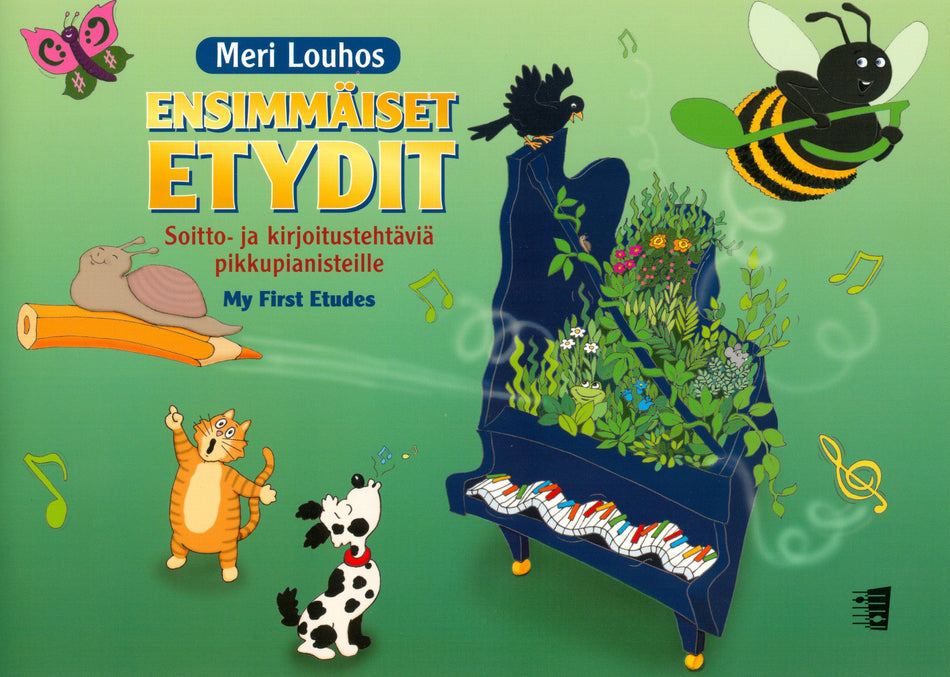 Meri Louhoksen Ensimmäiset etydit sisältää helppoja soitto- ja kirjoitustehtäviä, jotka sopivat minkä tahansa pianokoulun opetusmateriaalksi.