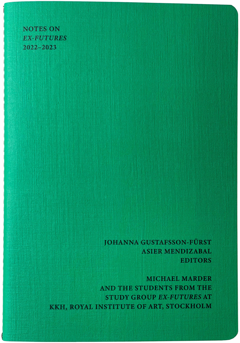 Notes on Ex-Futures contains a description of the process by Johanna Gustafsson Fürst, the text by Asier Mendizabal that formed the starting point of the project, and a text by philosopher Michael Marder who, as part of this process, held a lecture at the Royal Institute of Art. But first and for... Lue lisää