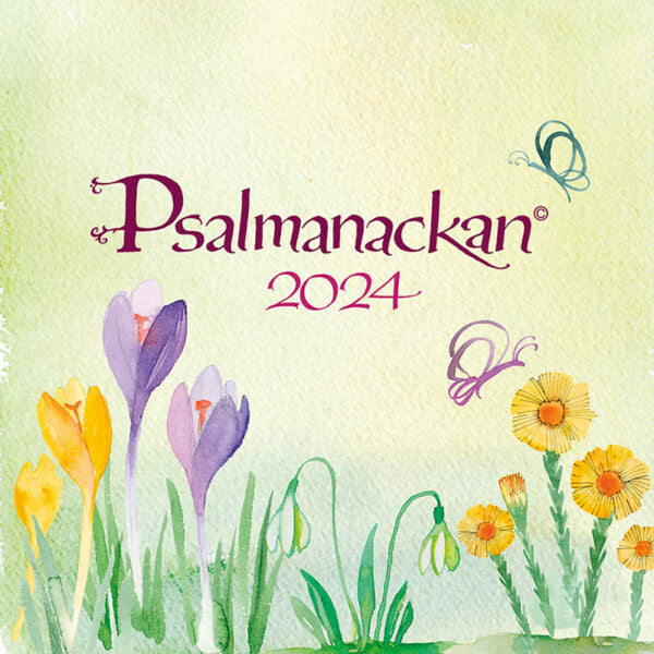 Psalmanackan är en månadskalender med en akvarellbild till varje månad. Varje bild har en strof ur en psalm.