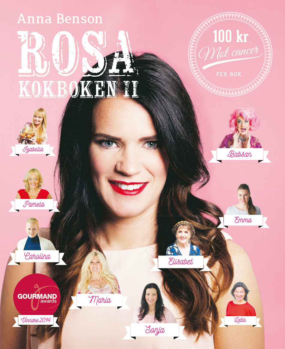 Rosa kokboken II säljs i begränsad upplaga och 100 kr per bok går till Cancerfonden och kampen mot cancer. Medverkande: Izabella Scorupco, Filippa Reinfeldt, Maria Montazami, Lill-Babs, Carolina Kluft, Lotta Engberg, Emma Green, Charlotte Kalla, Kayo, Therese Alshammar, Gudrun Schyman, Cecilia Forss, Pamela Andersson, Babsan, Victoria Silvstedt, Sonja Aldén, Elisabet Höglund, Tilde de Paula Eby, Pernilla Wahlgren och Katarina Hultling.