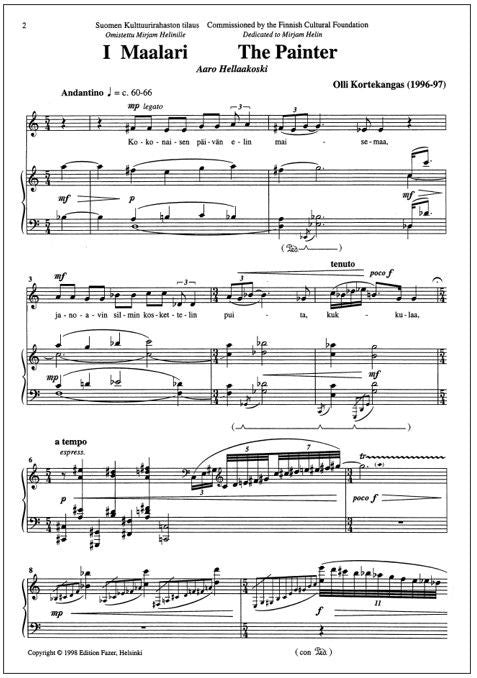 The four solo songs are settings of words by three Finnish poets. The work was commissioned by the Finnish Cultural Foundation and is dedicated to Mirjam Helin.