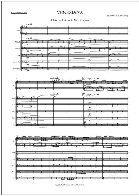 Veneziana for chamber ensemble and piano (2021-2022) - Study score