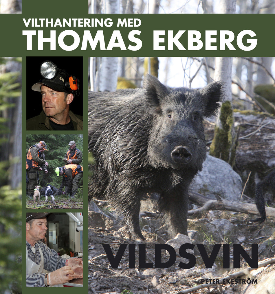 Det är skälet till boken Vilthantering med Thomas Ekberg VILDSVIN. Den tredje boken i serien, där Thomas förklarar och visar hur man kan ta hand om vilt på ett sätt som verkligen fungerar i praktiken, som fungerar i en helt vanlig svensk jägares vardag. De övriga i serien heter Älg samt Rådjur & Dovvilt . Peter Ekeström, jaktjournalist och fotograf, har också han lång erfarenhet av jakten och viltet. Det är han som står för texter och bilder i böckerna. Självklart handlar det om instruktioner, tips och goda råd, men ovanpå det lättas praktisk kunskap upp av Peters bilder ur skogen, på vildsvin och vildsvinsjakt.