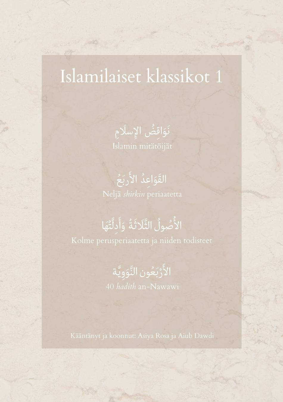 Tämä Islamilaiset klassikot -kirjasarjan ensimmäinen osa sisältää islamin uskonnon perusteita jokaiselle aloittelijalle. Nämä klassiset teokset ovat tunnettujen islamin oppineiden kirjoittamia töitä, jotka perustuvat Koraaniin ja sunnaan, jotka ymmärretään varhaisajan muslimioppineiden ymmärrykse... Lue lisää