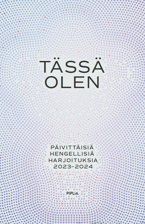 Tässä olen - Päivittäisiä hengellisiä harjoituksia -teos on apuväline säännölliseen mietiskelyyn ja rukoukseen Jumalan läsnäolossa. Kirjan harjoitukset kirkkovuoden 2023-2024 raamatuntekstien pohjalta ovat laatineet Pekka Yrjänä Hiltunen, Pirjo Kantala, Jaana Räntilä ja Kalevi Virtanen.
