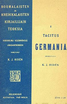 Kuuluisan muinaisen historiankirjoittajan vangitseva kansanhistoriallinen teos Germanian kansasta Rooman valtakunnan kulta-ajoilta K.J. Hidénin suomennoksena vuodelta 1904. Lue lisää