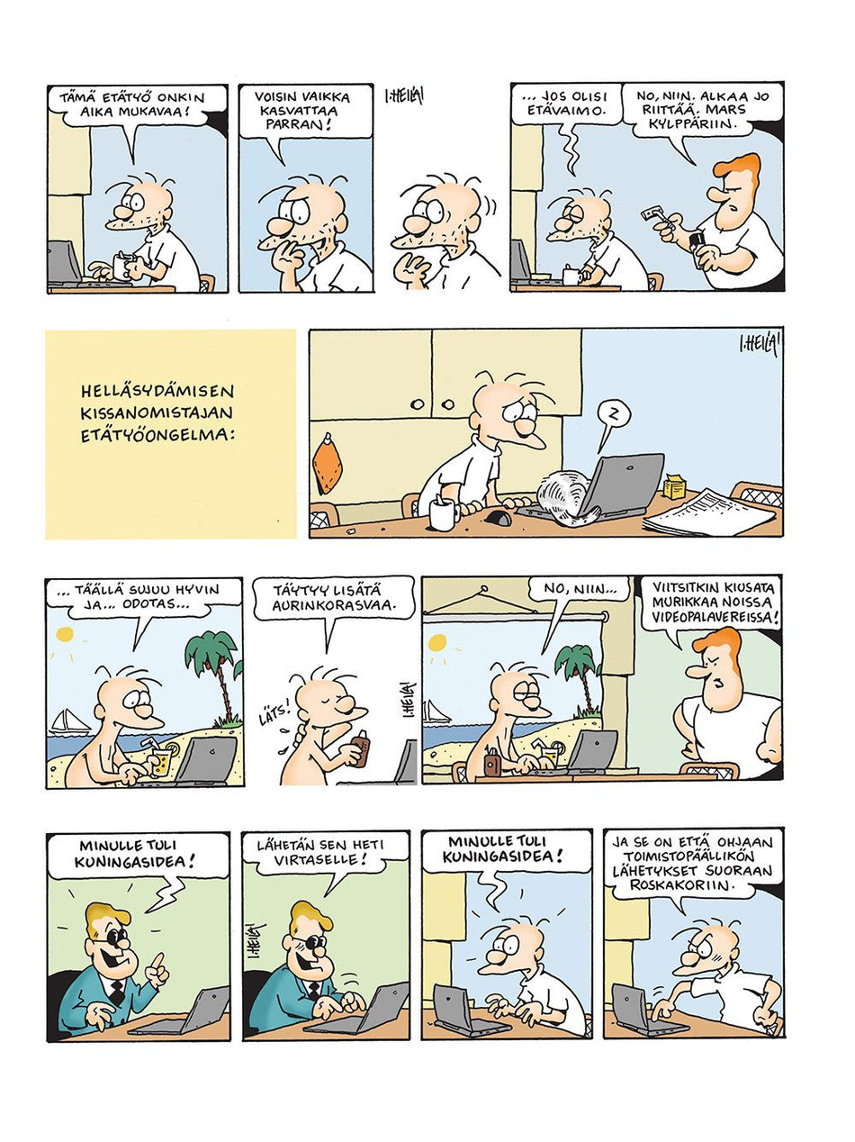 - Avainsanat huumori; kesäloma; etätyö; kotimainen sarjakuva; mökki; toimisto