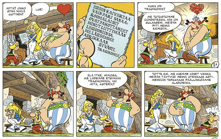 Kylän kaunis Mimosa menettää rakastettunsa Caesarin armeijan riveihin, mutta ei hätää: Asterix ja Obelix liittyvät legioonaan pelastaakseen Tragicomixin. Kuten armeijassa yleensä, eri ympäristöistä kotoisin olevat alokkaat eivät ihan aina ymmärrä toisiaan... Lue lisää