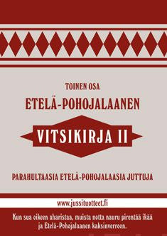 Oomma laittanu tähän toisehen vitsikirjahan melekolailla 300 vitsiä Etelä-Pohojalaasittaan. Vitsit kertoo melekeen koko maakunnasta ja ennenkaikkia Etelä-Pohojalaasuuresta ja luantehesta.