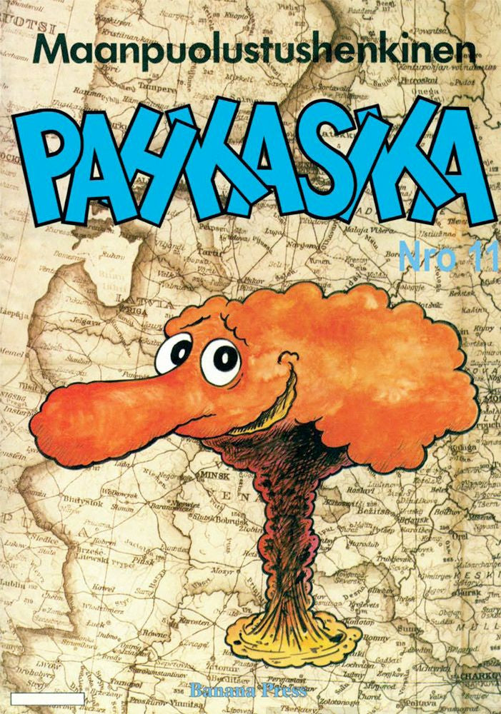 Huomiota kannattaa kiinnittää Pahkis 11:n kannen iloisesti virnuilevaan ydinräjähdyspilveen. Se kohoaa Itä-Euroopan kartalla hyvin läheltä paikkaa, joka tuli kuuluisaksi neljä vuotta Pahkasian tämän numeron ilmestymisen jälkeen. Paikkakunnan nimi on Tšernobyl.