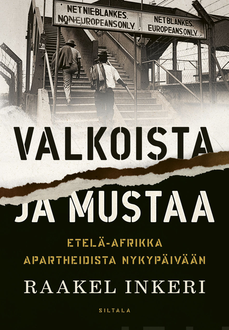 Valkoista ja mustaa johdattaa lukijan kolonialismin vaiheiden kautta apartheid- eli rotuerottelujarjestelmaan seka siihen, miten jarjestelma lopulta hajosi. Kirja kysyy, luhistuuko entinen vain valkoisten maa auttamatta kasiin, vai onko se Afrikan taloudellinen ja sosiaalinen veturi ja tulevaisuuden toivo. Kuinka pitkat ovat historian jaljet?