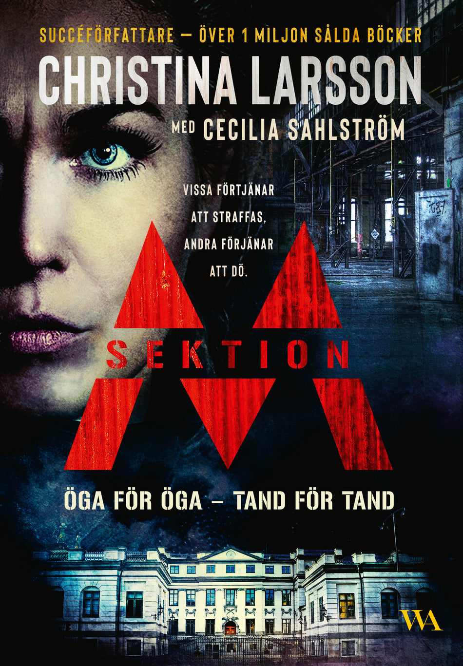 Nora Fellers nystart i Malmö slutade i katastrof. Nu står hon själv anklagad för mordförsök och tvingas förlita sig på kollegan Erika för att rentvå sig från misstankar. Samtidigt hittas en torterad och mördad kennelägare i en park i Malmö. Sektion M, med Charlotte Victorin i spetsen, kallas än en gång till Malmöpolisen för att bistå i utredningen. Men som vanligt har Charlotte en dold agenda Strypsnaran dras allt hårdare åt om justitierådet Ingemar Wallin, när Nora närmar sig sanningen om Sektion M. Högt upp i maktens korridorer tvingas mäktiga män ta obekväma beslut som kan innebära fritt fall, för att rädda sig själva. Upplösningen är brutal med omskakande vändningar och avslöjanden. Det blir en rå och hänsynslös kraftmätning där Nora Feller tvingas agera långt utanför lagen och sina egna principer för att bekämpa de onda krafter som vill förstöra hennes liv. Sanningen som uppdagas visar sig vara mer djävulsk och smärtsam än Nora kunnat föreställa sig. Det finns ingen vinnare och det räcker inte att överleva striden. De mörka krafterna måste tillintetgöras en gång för alla. "Öga för öga, tand för tand" är den avslutande delen i serien om Sektion M. I denna del har den framgångsrika Cecilia Sahlström medverkat som gästförfattare. Christina Larsson, som även skrivit böckerna om kriminalkommissarie Ingrid Bergman, har under sitt författarskap sålt hundratusentals exemplar.