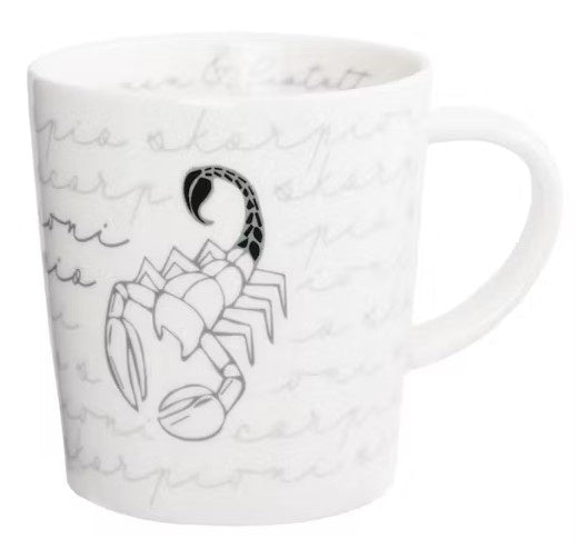Skorpioni-horoskooppimerkille oma muki, jossa merkin nimi sekä suomeksi, että englanniksi ja kaunis kuvitus merkistä. Kuvan yksityiskohta on värjätty merkin voimavärillä, eli mustalla. Mukin sisäpuolella lukee merkin tyypilliset luonteenpiirteet: karismaattinen, intohimoinen ja luotettava. Mukin ... Lue lisää