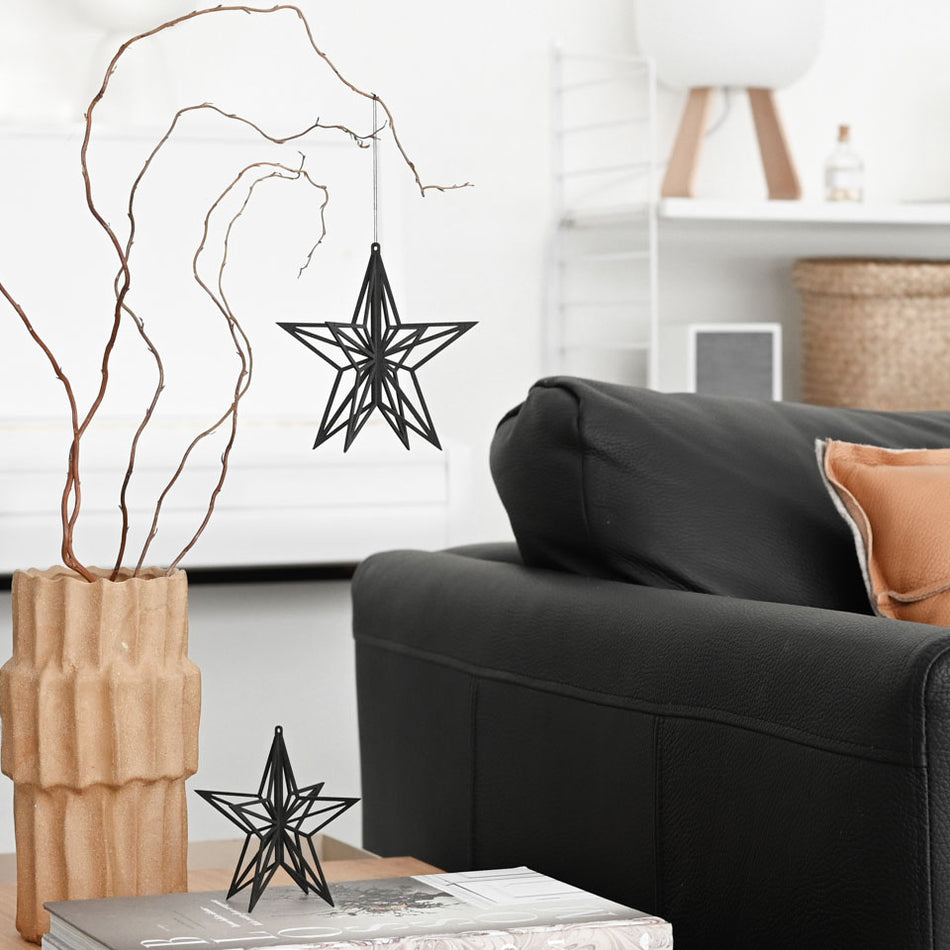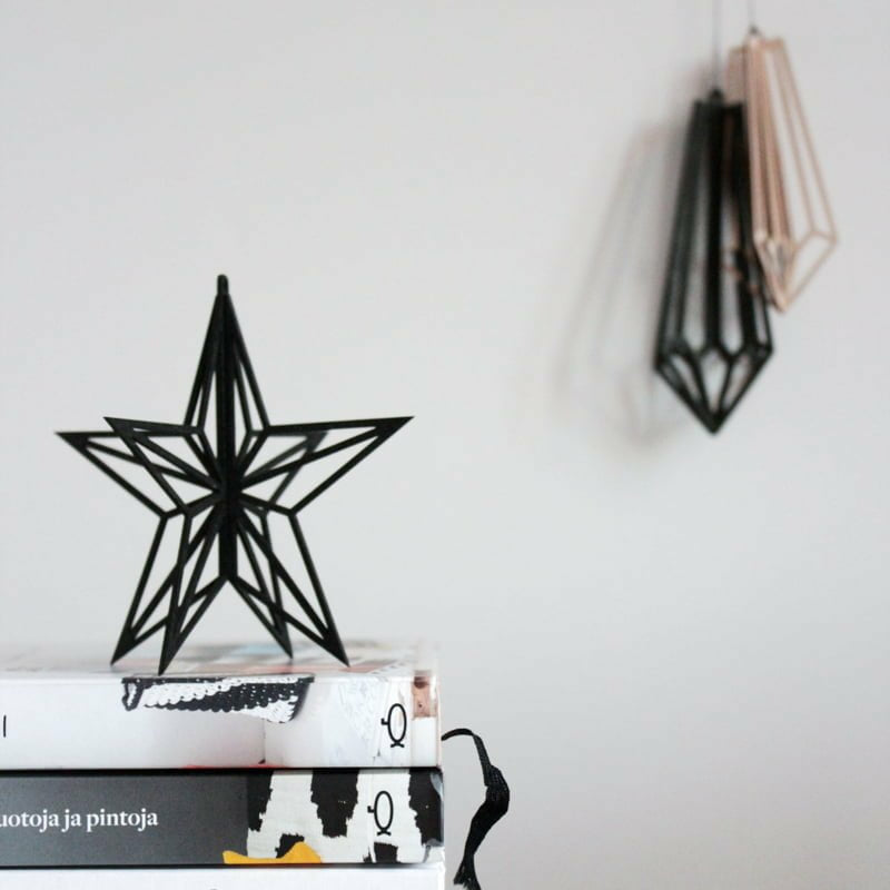 Suuri tähti mustassa värissä on kevyt ja tyylikäs koivuvanerikoriste, joka toimii joulukuusenkoristeena, erilaisissa asetelmissa ja pöytäkoristeena. Lue lisää