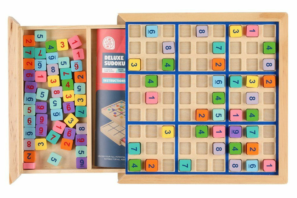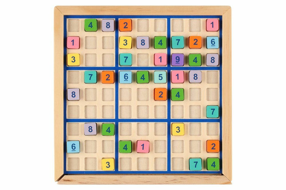 Puinen sudoku sisältää 90 numerolaattaa, joiden säilytys käy kätevästi pelilaudan sisällä olevassa laatikossa. Pelilaudan koko 22,50 x 22,50 x 3,50 cm. Ikäsuositus 6+.