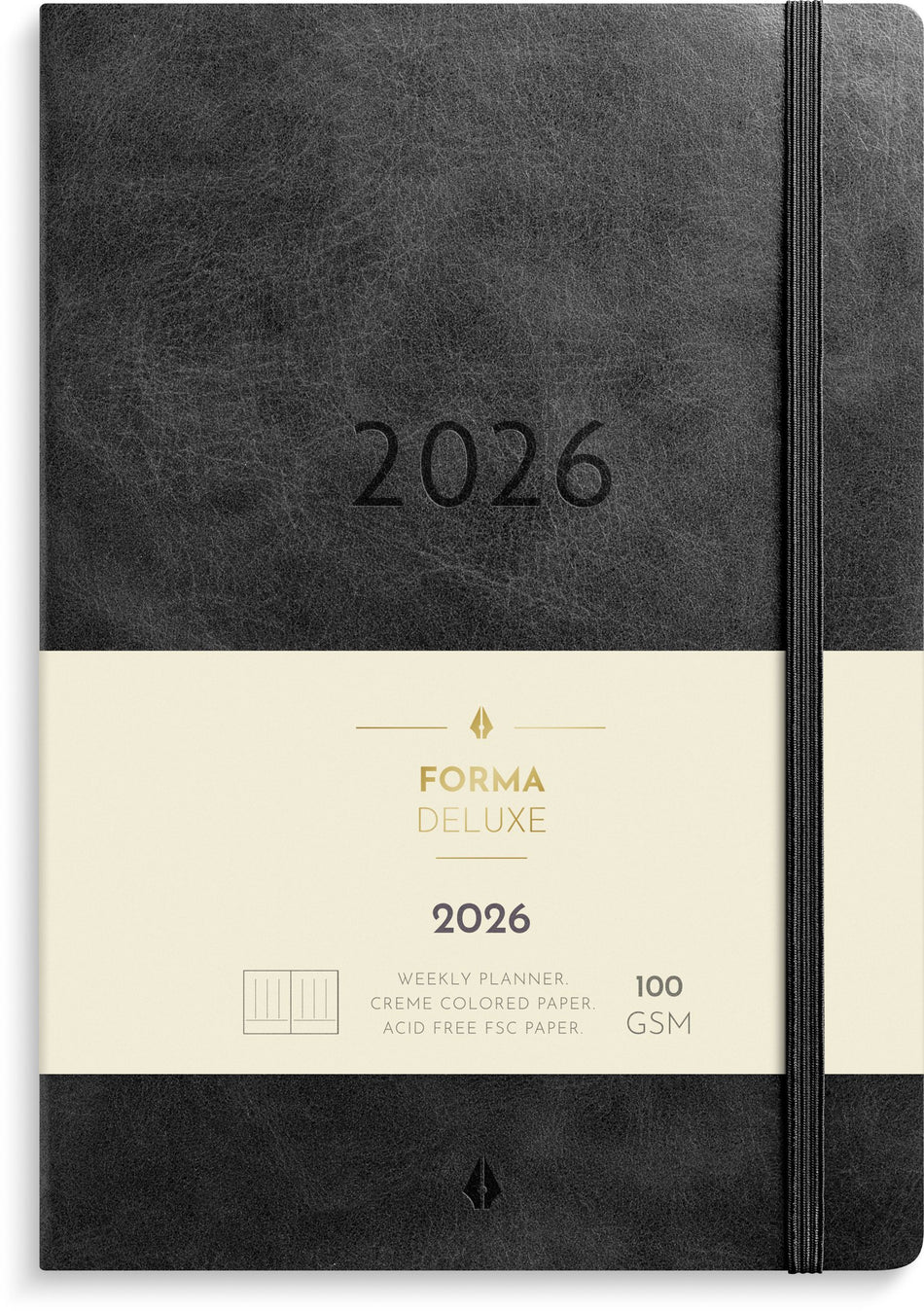 Keinonahkakansi, kuminauhalla. Säilytystasku takakannessa. Kalenterin aukeamalla yksi viikko, tuntijaotus 08-20, palsta muistiinpanoille, kuluvan ja seuraavan kuukauden kalenteritaulukot. Kalenteri sisältää nimipäivät, juhlapyhät, liputuspäivät, kuun vaiheet, vuosisuunnitelmat kuluvalle ja seuraa... Lue lisää
