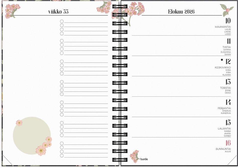 Täydellinen elämänsuunnittelijasi pienessä ja näppärässä muodossa, jonka voit helposti kuljettaa mukanasi arjessasi! Se sisältää kaiken mitä elämänsuunnittelija tarvitsee päivittäisille tehtävälistoille, tilaa heijasteluille tai pienille arkitaiteillesi. Kuukausi- ja vuosisuunnitelmat tekevät päi... Lue lisää