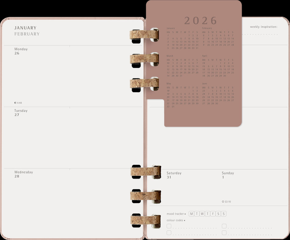 Kovat kannet ja kestävät mutta joustavat korkkisekoitus kierteet .Päivämäärät tammikuusta joulukuuhun 2026. Mukana irrotettavat tehtävälistat. Sisältää myös tarroja ja 3 kirjanmerkkiä merkintöjen personointiin. Pyöristetyt kulmat, joustava suljin ja laajennettava tasku takana. Tämän Moleskine-tu... Lue lisää