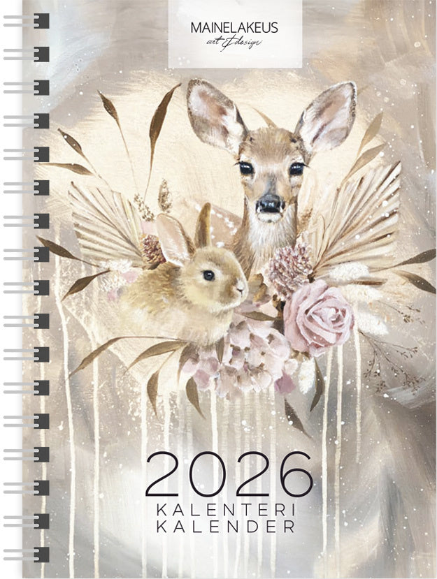 Taiteilija ja tekstiilisuunnittelija Hanna-Maria Mainelakeuden kuvittama kaunis luontoaiheinen päivyri A5-koko (148 x 210 mm). Mattalaminoitu kartonkikansi, metallinen parikierresidonta, kierteen väri hopea. Suunniteltu Suomessa, valmistusmaa Viro. Lue lisää
