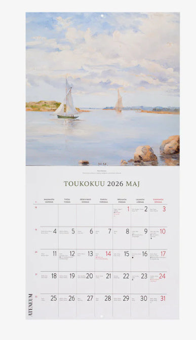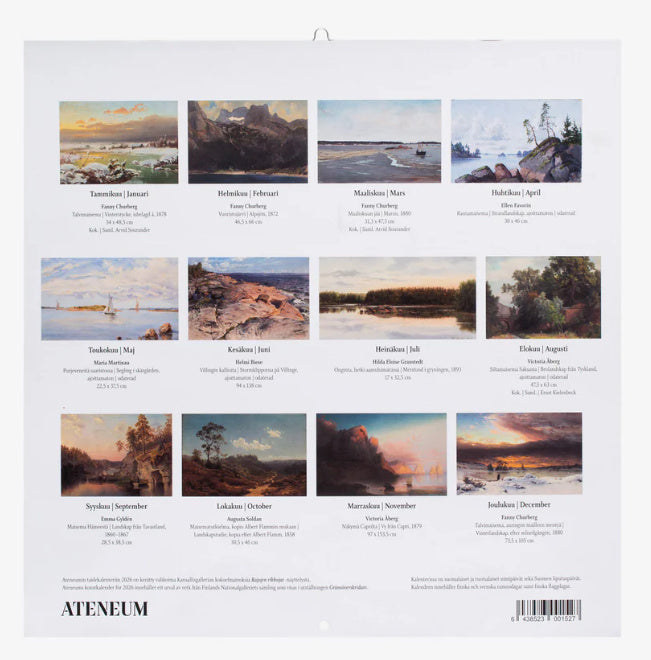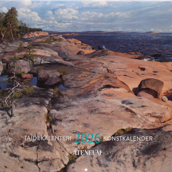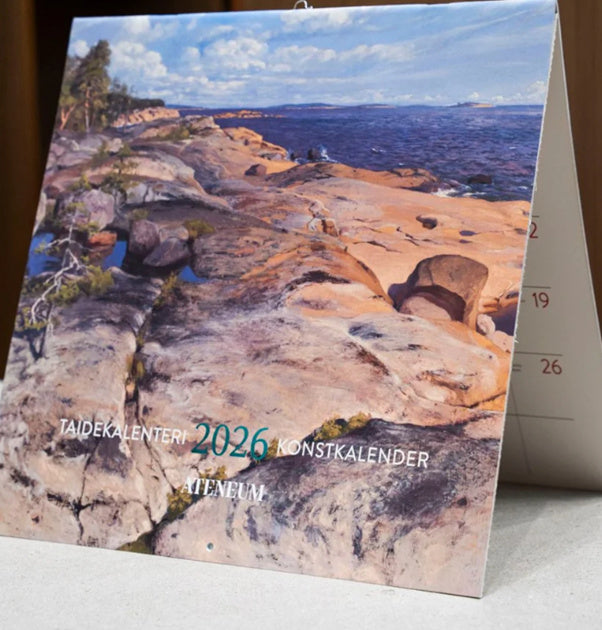 Pidä arki järjestyksessä Rajojen rikkojat -seinäkalenterin avulla! Vuoden 2026 taidekalenteriin on koottu maisema-aiheisia kuvia Ateneumin Rajojen rikkojat -näyttelyn teoksista. Kannessa on kuva Helmi Biesen maalauksesta Villingin kallioita. Lue lisää