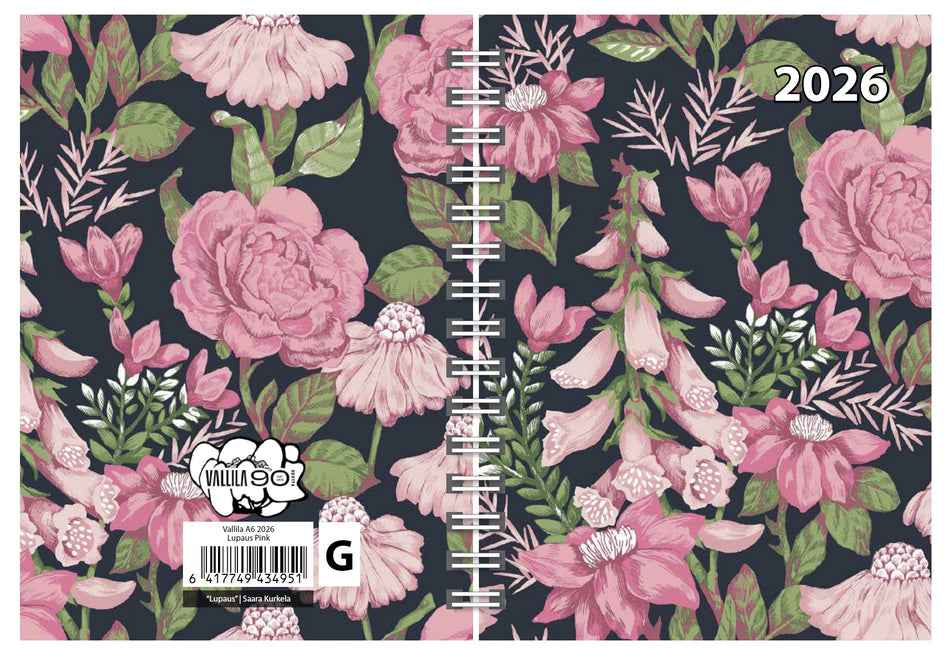 Vuosikalenteri 2026 Vallila A6 Lupaus pink
