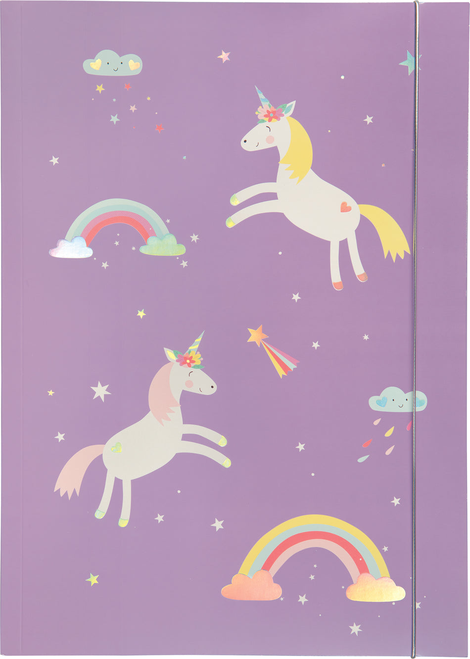 Kulmakuminauhakansio A3 Magic Unicorns kuminauhalla