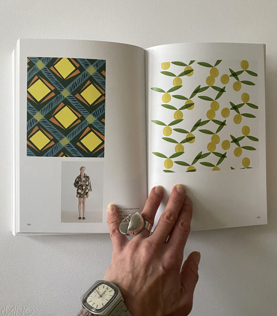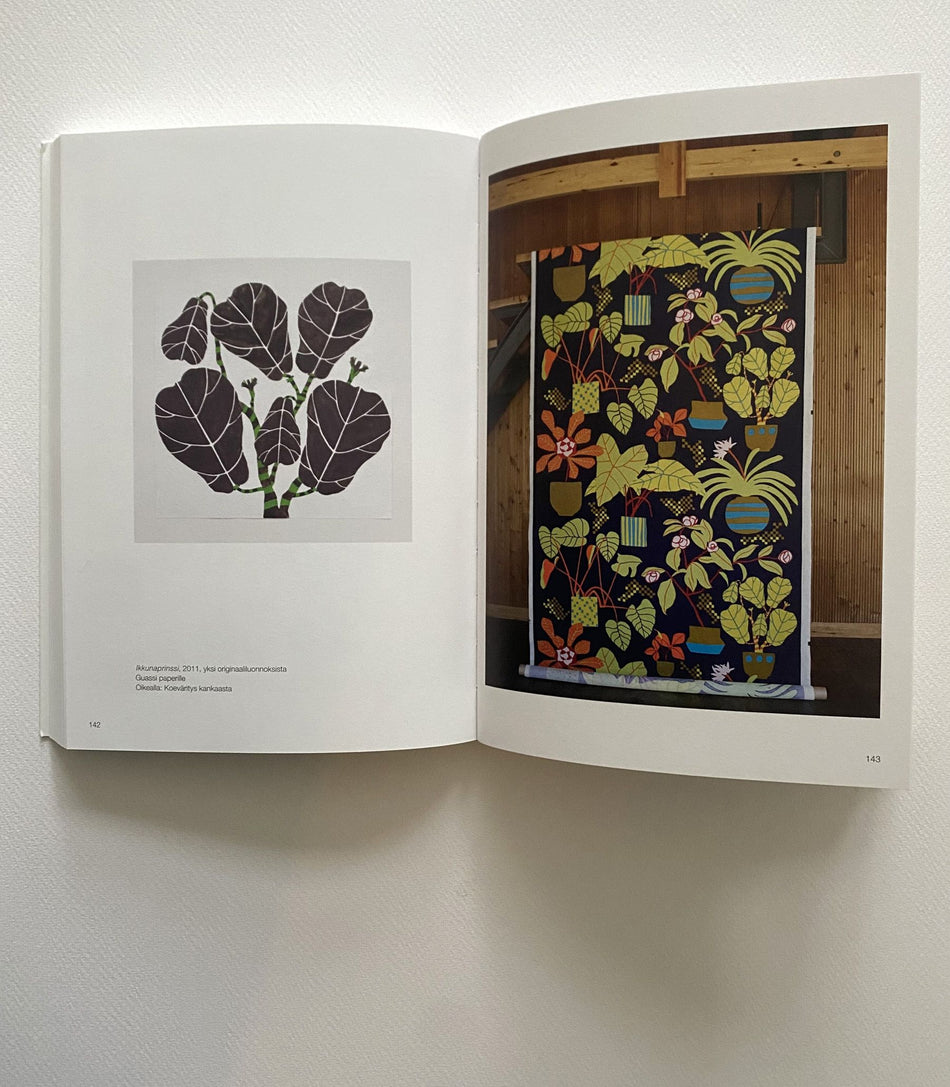Kirjassa valotetaan työskentelyn vaiheita ensimmäisistä rautalankaluonnoksista valmiiksi kankaaksi ja vaatteeksi. Valokeilassa on erityisesti originaali eli käsin piirretty tai maalattu kuva, josta painokankaan valmistus alkaa.