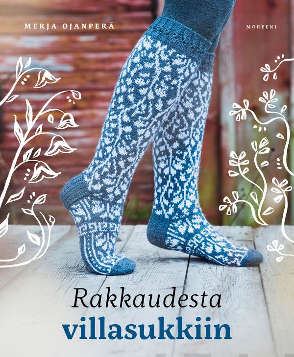Rakkaudesta villasukkiin on Merjan Ojanperän neljäs sukkakirja, johon huipentuu hänen menestyksekäs kirjailijanuransa. Luonnosta ja kasvusta inspiraation saaneissa sukkamalleissa kiteytyvät kokemukset pitkältä matkalta, jonka Merja on kulkenut suunnittelijana. Silmiä hivelevän kauniiden sukkamallien joukossa on niin palmikko- ja pitsineuletta kuin kirjoneulettakin, ja varsien pituus vaihtelee lyhyestä ylipitkään. Ohjeita on eripaksuisille langoille.