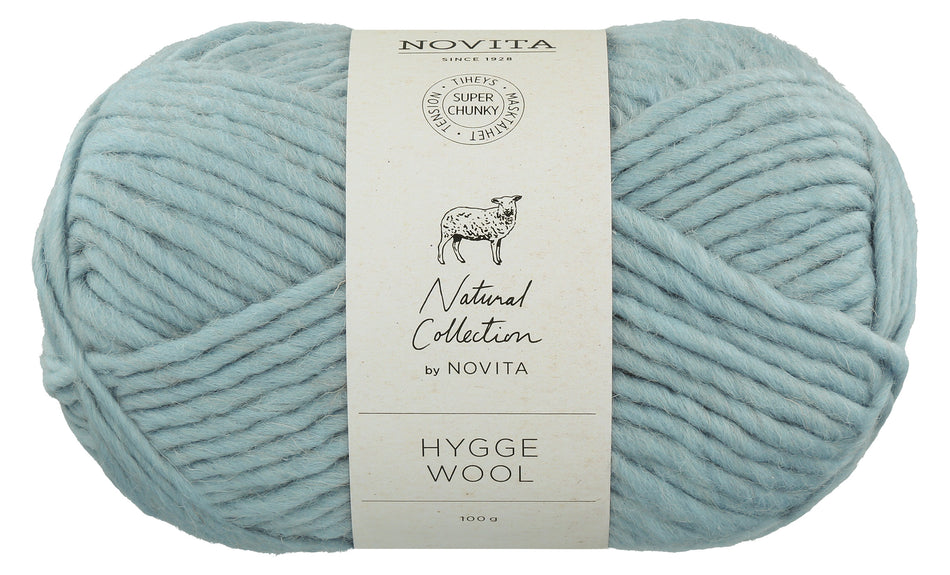Novita Hygge Wool on paksu, kuohkea ja yksisäikeinen 100 % villalanka. Lanka sopii erityisesti pehmeisiin ja näyttäviin asusteisiin, selkeälinjaisiin neuleisiin sekä peittoihin. Muhkea pipo valmistuu kahdesta kerästä. Paksuun lankaan ovat ihastuneet myös aloittelevat neulojat sillä sitä on helppo ja nopea neuloa. Hygge Wool sopii kansainvälisiin neuleohjeisiin, joiden lankasuosituksena on Super Chunky -paksuinen lanka. Hygge Wool -villalangasta neulotut tuotteet voidaan konepestä 30 asteessa. Lanka ei sovellu huovutukseen. Puikkosuositus on 10. 100 gramman kerässä on 60 metriä lankaa. Novita Hygge Wool -lanka on Avainlipputuote