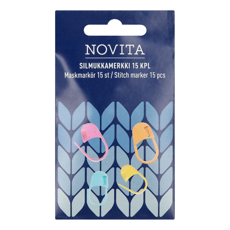 Novita Silmukkamerkeillä voi merkitä neuletyön aloitus- ja lopetus-, kavennus- ja lisäyskohtia. Sisältää 15 kpl muovisia lukittavia silmukkamerkkejä. Lue lisää