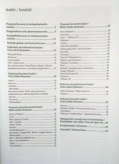 Tarhapimpinellaruusut ja tarhaharisoninruusut - Spinosissimarosor och harisoniirosor Lehtivihko, moniste, suomi; monia kieliä; ruotsi