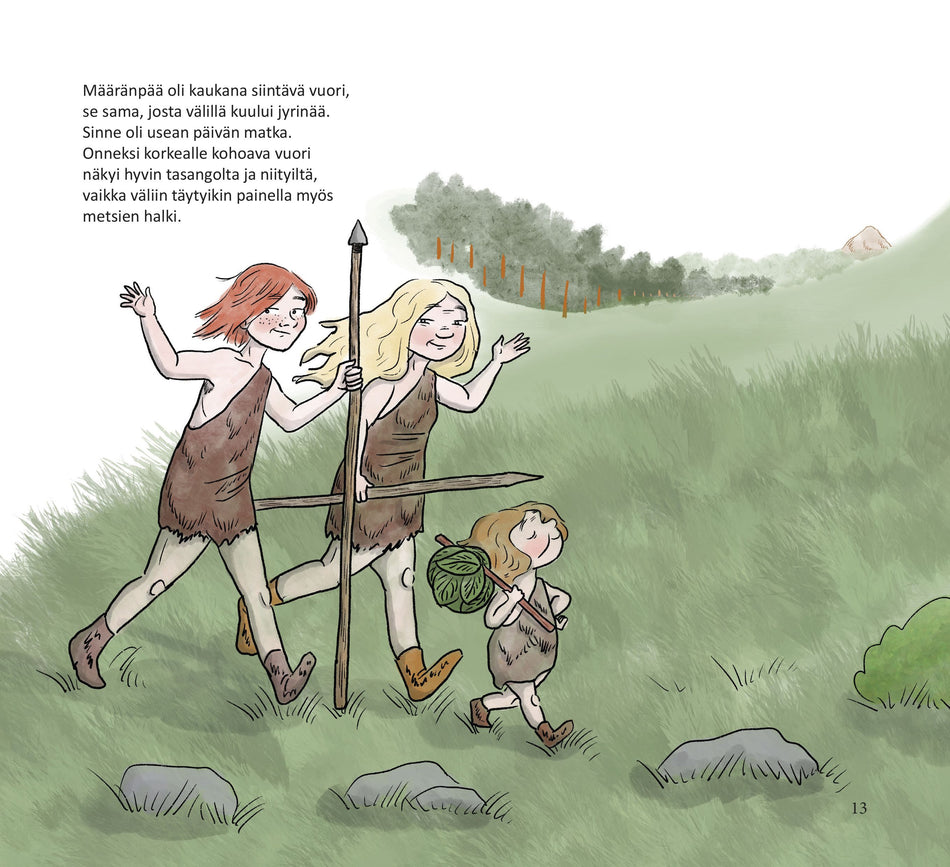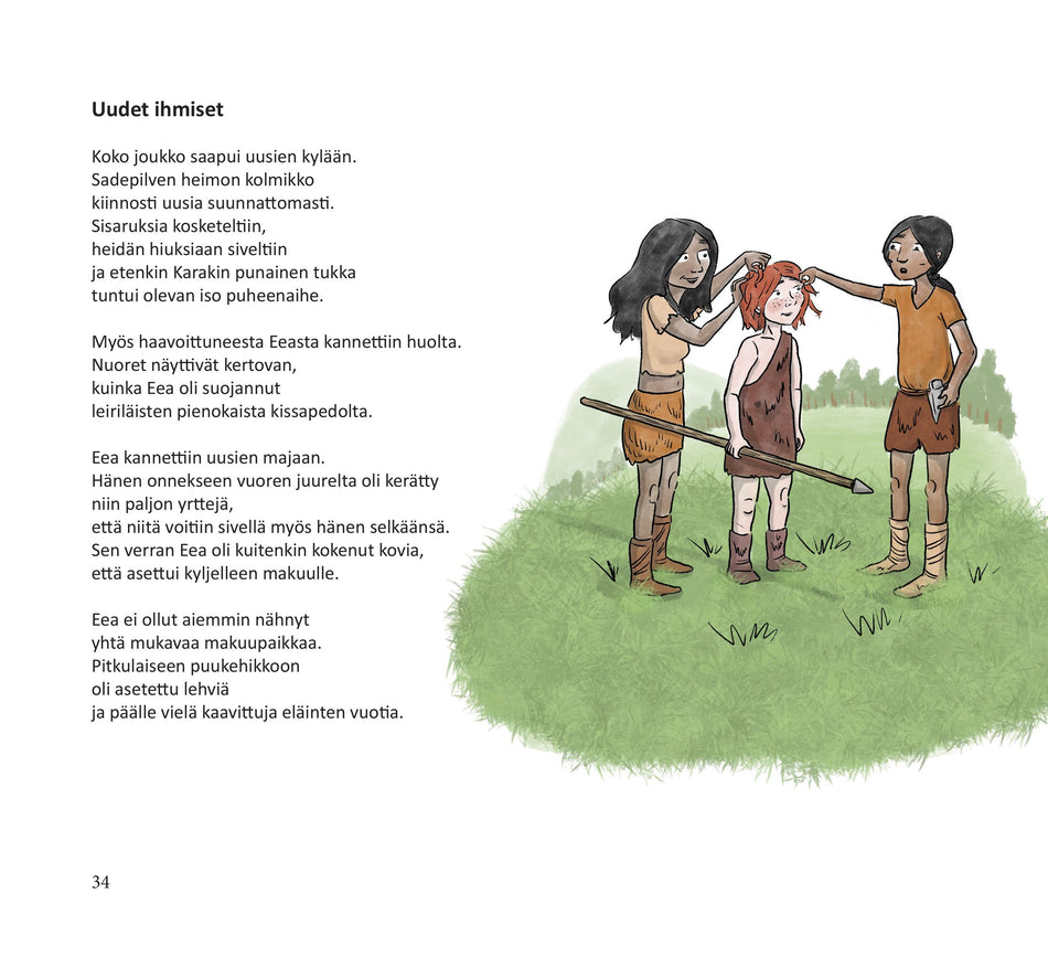 Tämä kuvitettu lasten- ja nuortenkirja jakautuu kahteen osaan. Ensimmäisessä osassa kerrotaan fiktiivinen tarina siitä, kuinka neandertalilaiset kohtasivat ensi kertaa Afrikasta saapuneet nykyihmiset. Pääosassa ovat neanderilaissisarukset. jotka hakevat lääkeyrttejä haavoittuneelle isälleen. Matkalla he kohtaavat ensimmäistä kertaa nykyihmisten metsästysseurueen. Sisarukset törmäävät myös vaarallisiin petoihin ja hämmästelevät uusien tulijoiden aseita.