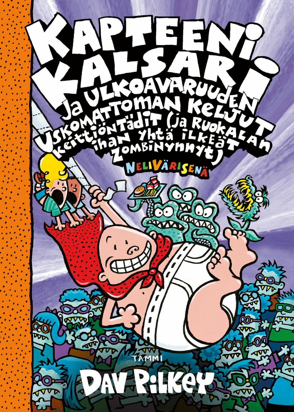 Kapteeni Kalsari ja ulkoavaruuden uskomattoman keljut keittiöntädit (ja ruokalan ihan yhtä ilkeät zombinynnyt), nelivärinen