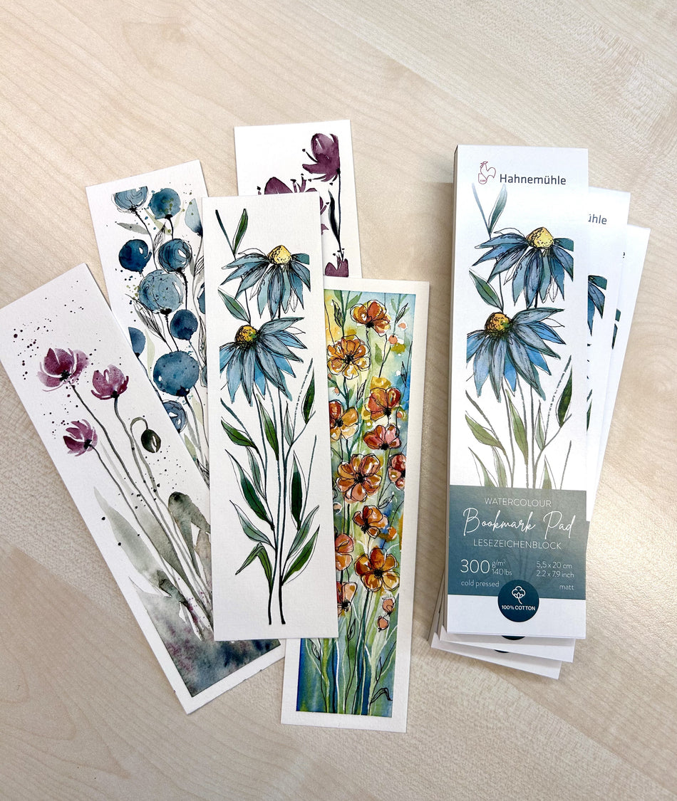 Hahnemühle Watercolour Bookmark Pad on täydellinen kaikille luoville ihmisille. Sisältää 15 valmiiksi leikattua kirjanmerkkiä, joten voit aloittaa heti! Tukeva 100 % puuvillapaperi 300 gsm soveltuu hyvin akvarelliväreille, tusseille, kynille, sekä guassi- ja akryyliväreille. Lue lisää
