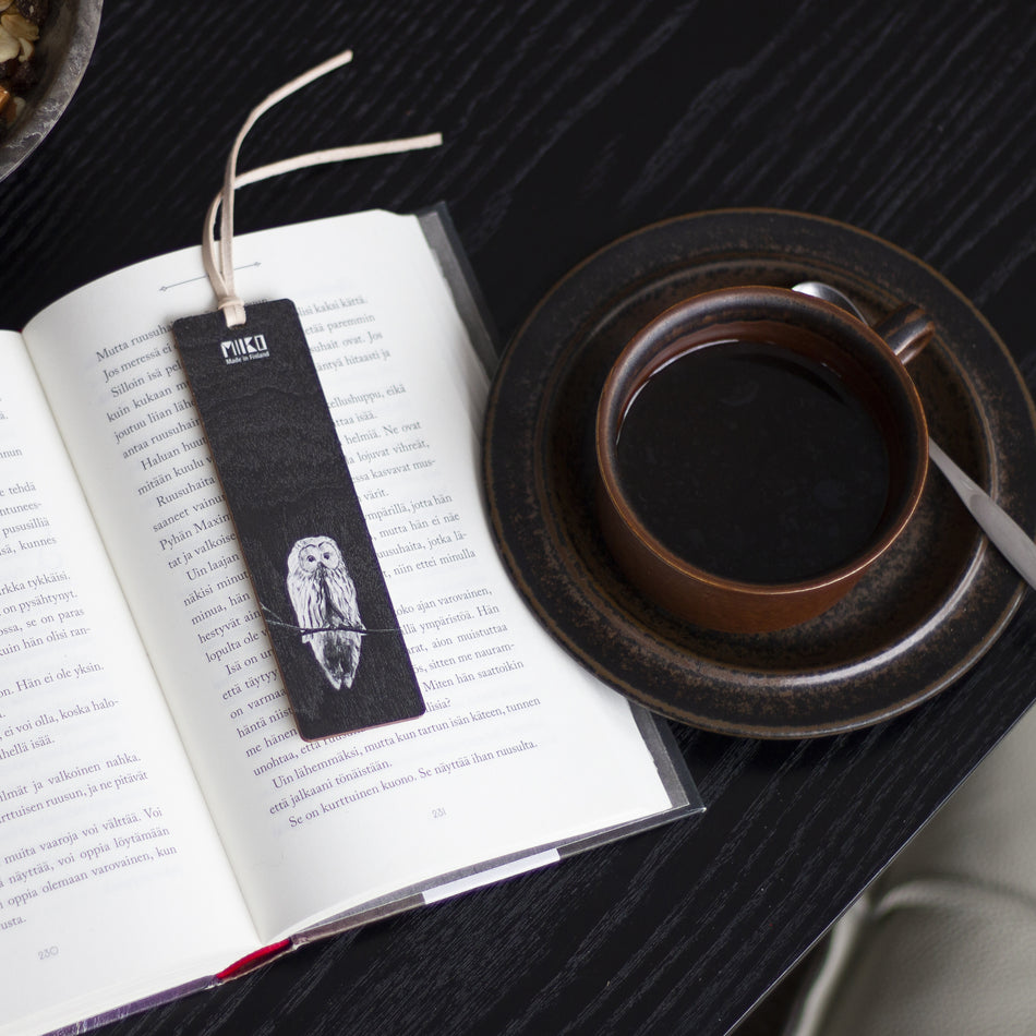Kirjanmerkissä käytettävä vaneri valmistetaan ympäristöystävällisesti suomalaisesta koivusta ja poronnahkasta. Lue lisää