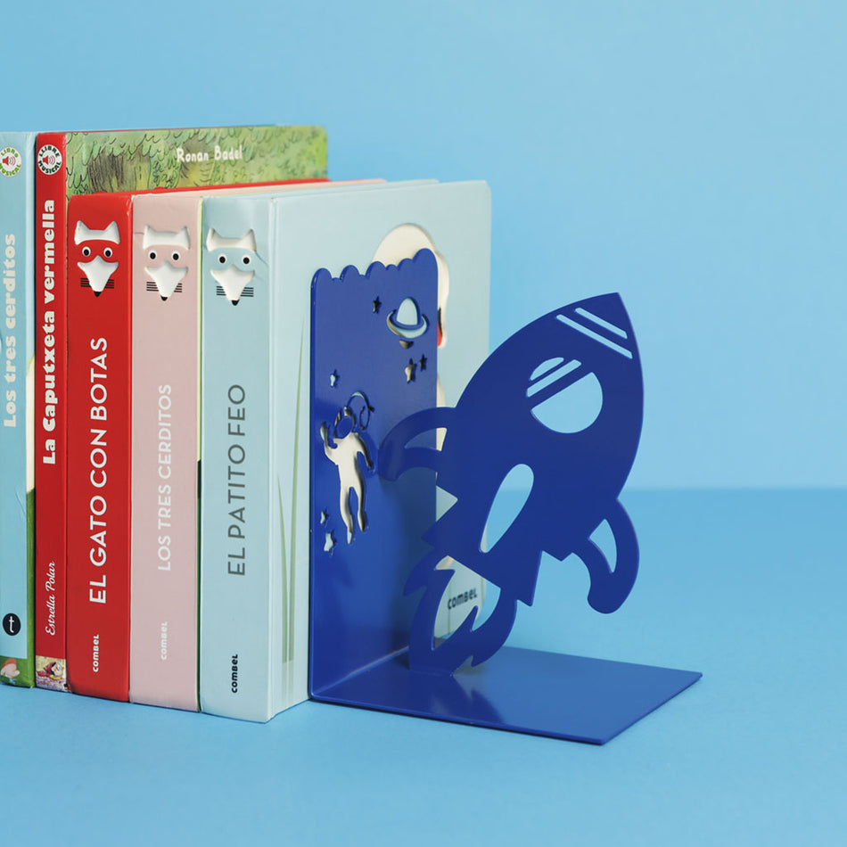 Kirjatuki Avaruus pitää kirjasi ojennuksessa. Materiaali sinistä metallia. Pakkauksessa yksi kirjatuki. Lue lisää
