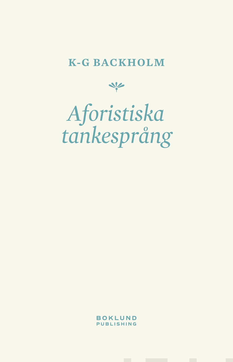 K-G Backholm har tidigare skrivit två aforismböcker (Lätt aforistiskt, Sahlgrens 1994 och Efteråt är allting annorlunda, Sahlgrens 1997). I sina aforismer kan han se det väsentliga bakom allt invecklat och sätta rätta ord på det hela. Han skriver aforismer om samhälle, konst, historia, sanning oc... Lue lisää