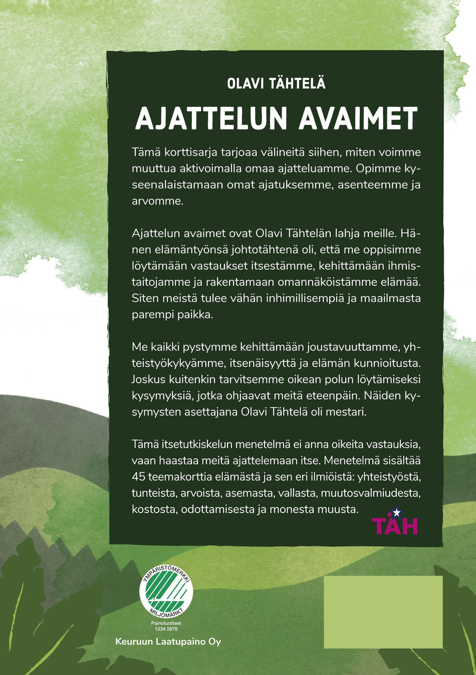 • Avainsanat ajattelun kehittäminen; elämäntaidot; itseopiskelumenetlmä; korttisarja