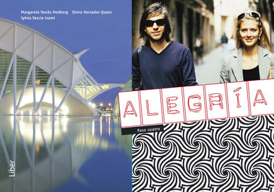 Alegría paso cuatro har 10 kapitel med en bastext i varje, extra lästexter och minst tre hörövningar per kapitel. Alegría är en bok som man ska hinna igenom under läsåret, men som ändå ger mycket extramaterial. Ordkunskap: Boken och övningarna fokuserar ovanligt mycket på ordkunskap för att öka ordförrådet och för att få igång eleverna i kommunikationsövningarna. Övningarna är fylliga och ger elever på alla nivåer träning och kunskap. Kultur och musik: Efter vart tredje kapitel finns ett uppslag med kultur och realia och ett uppslag med spansk och latinamerikansk musik. Eleverna får läsa om Superstición, El carnet de conducir, El golpe militar en Chile och mycket mer. Grammatik inlärd under steg 3 varvas med nya grammatikavsnitt t.ex. futurum, konditionalis och imp. konjunktiv. Fokus ligger fortfarande på ordinlärning. Vi finner också de vackra och informativa uppslagen Rincón de Cultura och Rincón de Música med texter om Cervantes, Isabel Allende, m.fl. Lästexterna i Leer y entender är nu längre med en successiv svårighetsökning. Det bjuds också på autentisk skönlitteratur. Glosor: Texterna har serviceglosor på samma sida, men även fullständiga styckeordlistor bak i boken. Där finns också en alfabetisk spansk-svensk ordlista. Samtliga texter finns översatta till svenska. Elevljud, samtliga bastexter samt ett urval hörövningar, finns som komprimerad fil att hämta från liber.se.