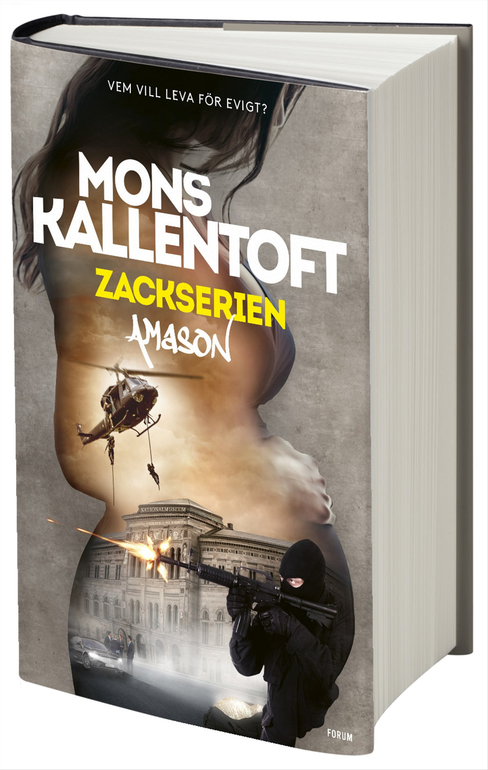 Vad som tros vara drottning Hippolytes mytiska gördel, världens mest värdefulla bälte, stjäls från Nationalmuseum under en spektakulär kupp. Två säkerhetsvakter dödas och rånarna försvinner ut i skärgården med helikopter. Morgonen därpå hittas museets unga kvinnliga chef skjuten, och en intensiv jakt inleds. Grekiska staten pressar på för att gördeln ska återbördas, och Zack som leder utredningen kallas upp till statsministern. Vem ligger bakom kuppen? Spåren leder åt flera håll, ut i världen men även till Zacks allra närmaste omgivning. Gördeln sägs kunna ge evigt liv, men var är den?Samtidigt är Hebe gravid med deras andra barn, men komplikationer tillstöter. Kommer Zack hinna lösa gåtan, stoppa mördarna och rädda sin familj?Amason är den nionde actionspäckade boken i Zackserien och löst baserad på myten om Herkules stordåd.