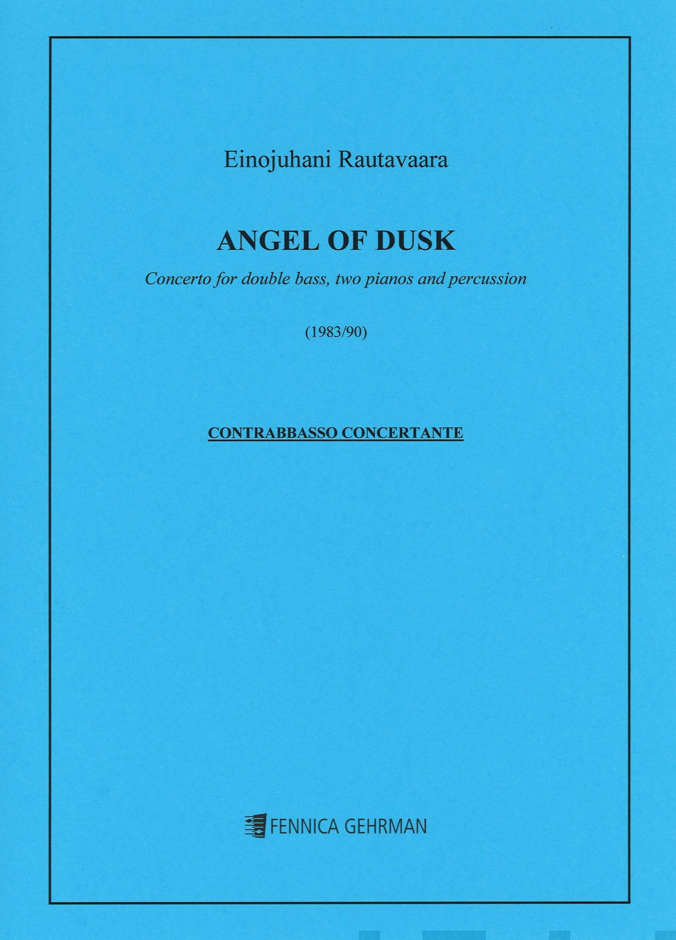 Angel of Dusk for double bass, two pianos and percussion is a chamber ensemble version of Einojuhani Rautavaara's double bass concerto dating from 1980/1993. The work is dedicated to Olga Koussevitzky, the widow of Sergey Koussevitzky. The Koussevitzky foundation sent Einojuhani Rautavaara to study with Aaron Copland in Tanglewood, and it was Sibelius who chose Rautavaara as the recipient of this scholarship.